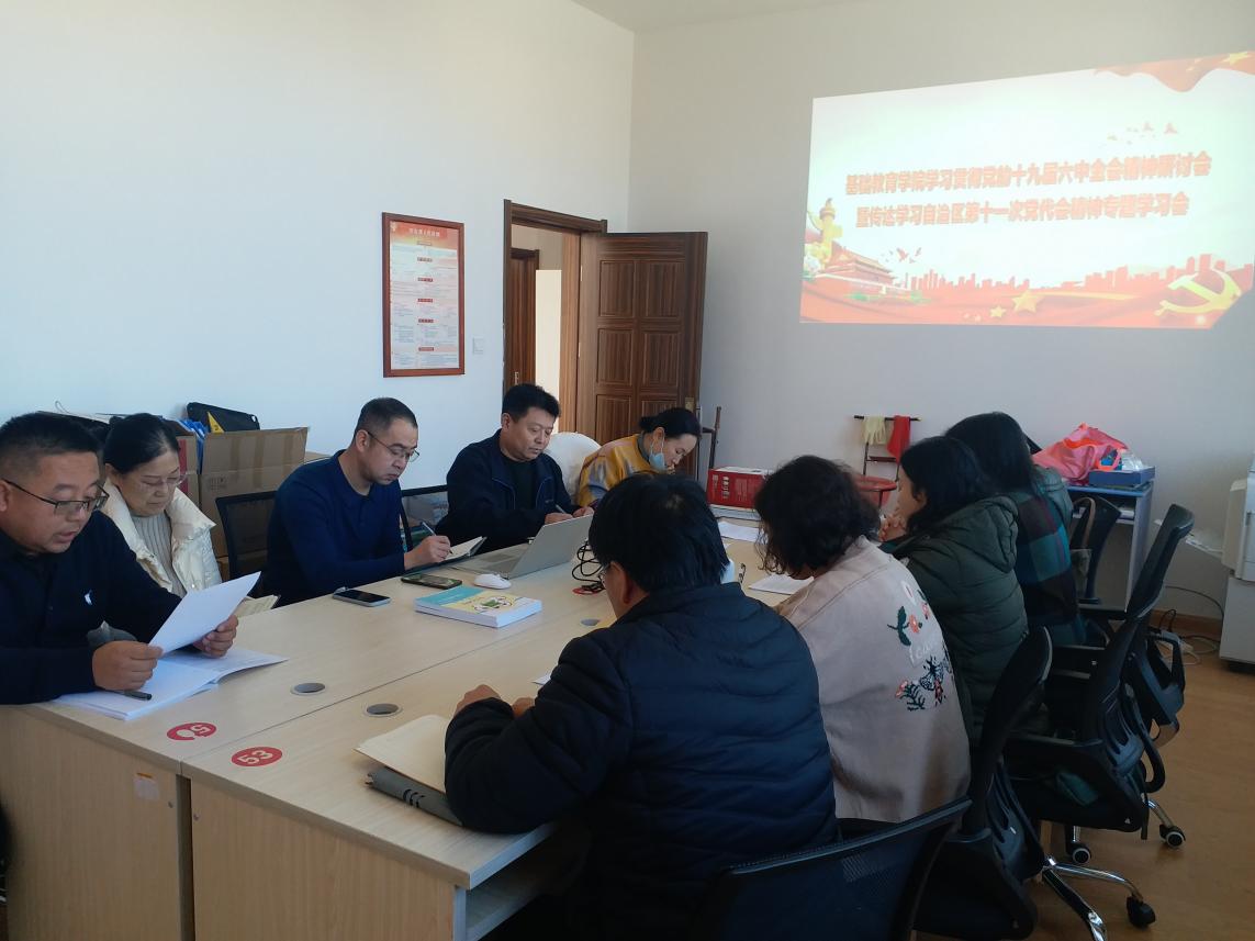 為認(rèn)真學(xué)習(xí)貫徹黨的十九屆六中全會(huì)精神和自治區(qū)第十一次黨代會(huì)精神,做好學(xué)習(xí)宣傳、研究闡釋工作,持續(xù)推進(jìn)黨史學(xué)習(xí)教育走深走實(shí),引導(dǎo)廣大師生匯聚起堅(jiān)定歷史自信、創(chuàng)造歷史偉業(yè)的磅礴力量,2021年12月6日下午,基礎(chǔ)教育學(xué)院黨總支在崇正樓402室組織召開(kāi)了黨的十九屆六中全會(huì)精神學(xué)習(xí)研討會(huì)暨傳達(dá)學(xué)習(xí)自治區(qū)第十一黨代會(huì)精神專(zhuān)題學(xué)習(xí)會(huì)。會(huì)議由黨總支書(shū)記常喜主持,全體教職工參與學(xué)習(xí)研討。