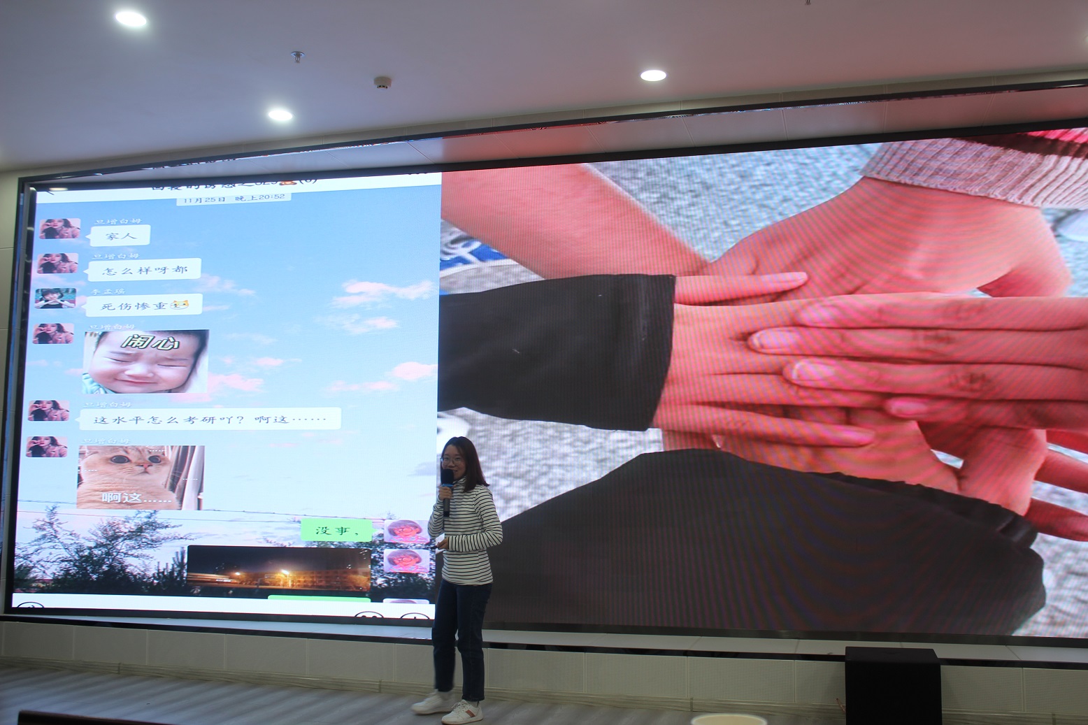 “室”聽說——宿舍故事分享會經過緊張而激烈的初賽,最終有11組選手入圍決賽。決賽中選手們各有特色,各顯其能,以流暢的口語表達能力、富有感染力的肢體語言展現各民族舍友之間互幫互助、有意義有趣的青春勵志小故事,他們幽默風趣的講述著宿舍和睦相處秘訣、深情激昂的講述著發生在青澀大男孩之間的趣事、沉著穩重的女孩們從容不迫的展現著姐妹之間的深厚友情等宿舍的和諧氛圍與真摯感情。每段精彩的青春勵志小故事都充分體現了宿舍同學之間的和諧相處之道,也激勵著現場的同學。整個宿舍故事分享會,觀眾們深深陶醉于現場勵志小故事,贏得了現場觀眾的陣陣掌聲,這不僅使同學們更加熱愛生活,保持積極向上的人生態度,還增進同學之間的友誼。通過激烈角逐,張振洋獲得了比賽一等獎、婁航碩,巴哈日拉獲得了比賽二等獎、王紅艷、陳賀、吳金青獲得了比賽三等獎、王佳樂、李慧美、石雨冬、杜雪、傀利獲得比賽優秀參與獎。最后,安梅琴老師對此次比賽的充分肯定,贊揚參賽選手的優秀表現,并對大家提出了殷切期望。