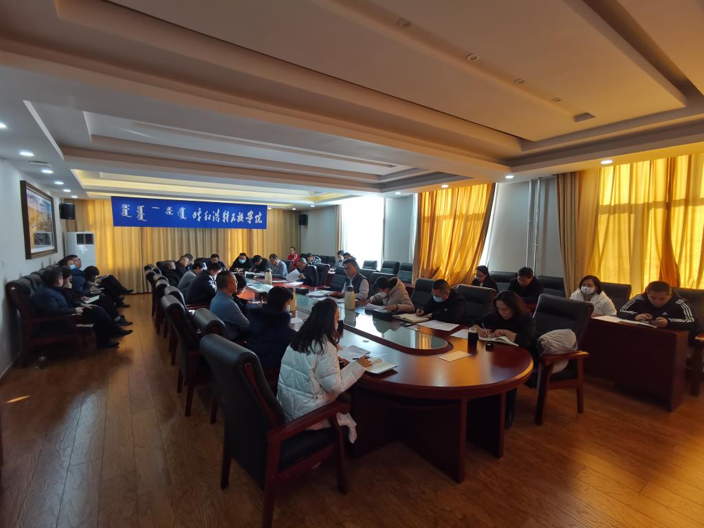 2021年12月15日上午,學校2021年12月大學英語四、六級考試工作部署會在辦公樓二樓會議室召開。會議由教務處額爾敦布和處長主持,教務處、紀委監察專員辦公室、學生工作處、后勤管理處、保衛處、學校醫務室和二級學院負責人參會。