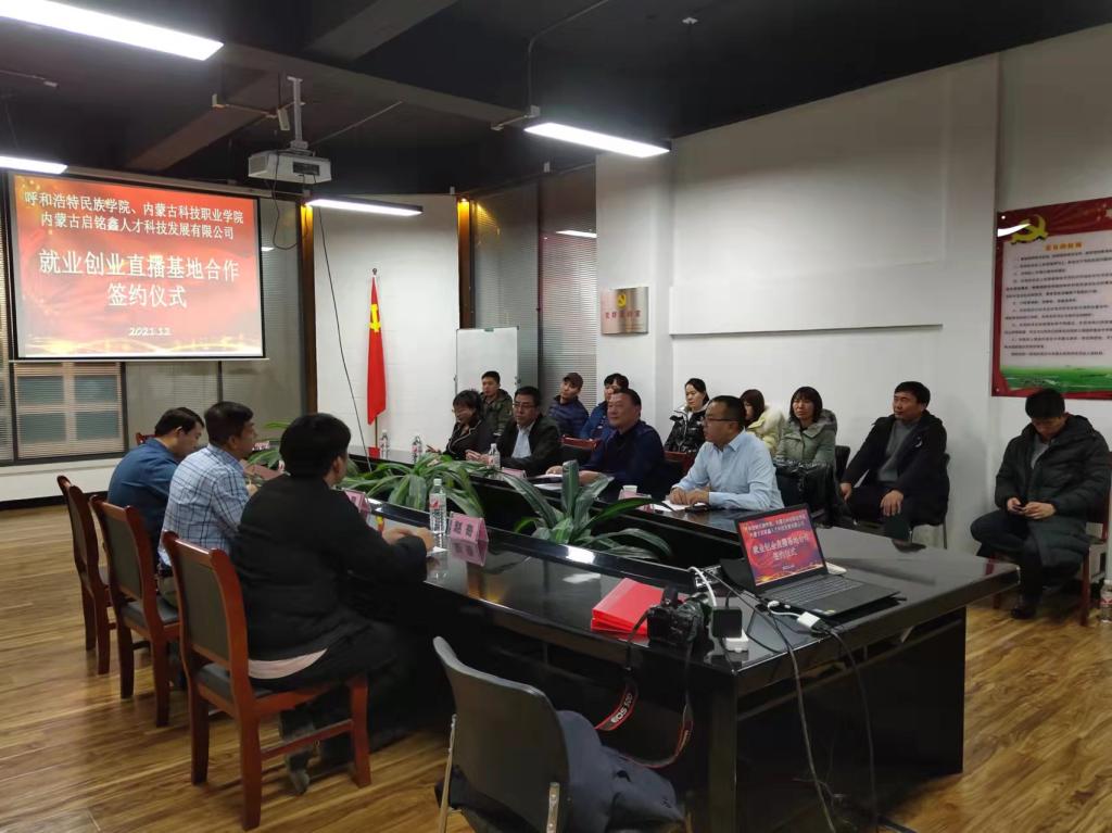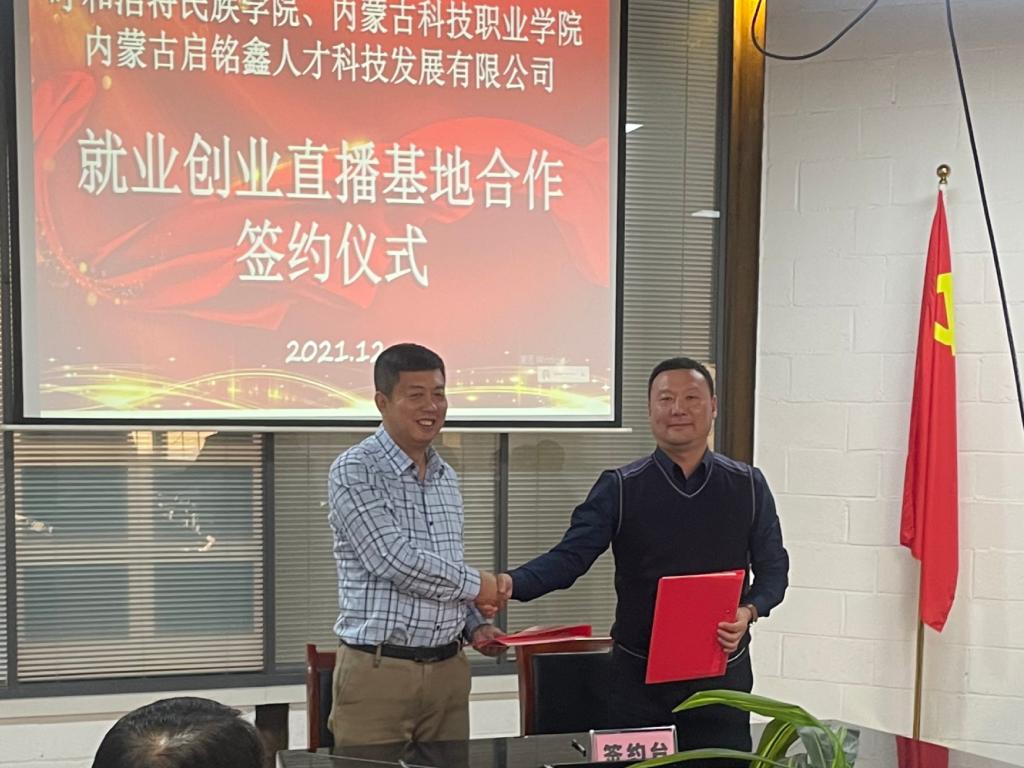 12月20日,我校就業(yè)指導(dǎo)處與內(nèi)蒙古啟銘鑫人才科技發(fā)展有限公司簽定就業(yè)創(chuàng)業(yè)直播基地合作協(xié)議。就業(yè)指導(dǎo)處工作人員和外國語學(xué)院、經(jīng)濟管理學(xué)院等八個學(xué)院就業(yè)工作人員參加簽約儀式。