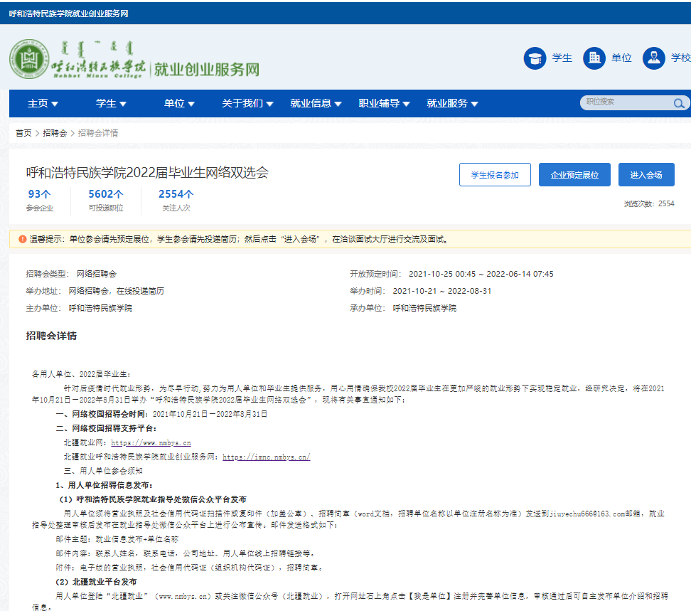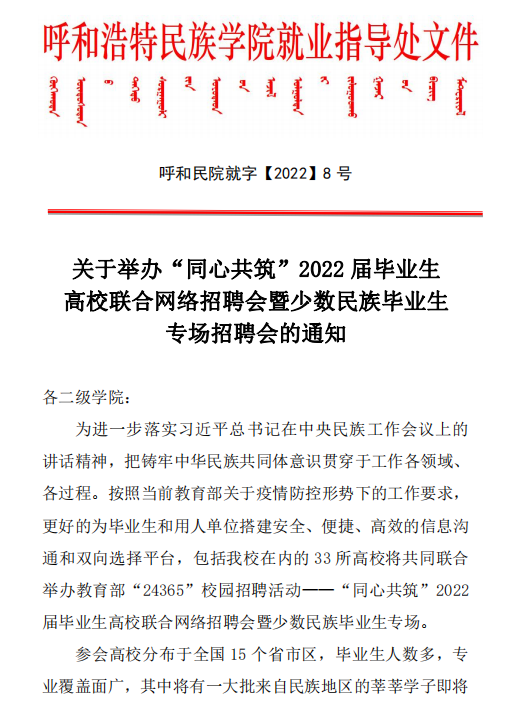 “同心共筑”2022屆畢業生高校聯合網絡招聘會暨少數民族畢業生專場招聘會正在進行中