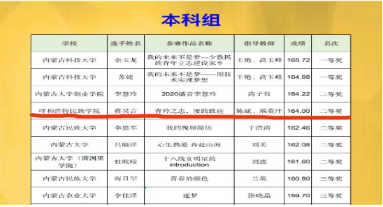 啟動線上咨詢指導,積極樹立優秀典型。疫情期間,就業指導處協同各二級學院就業工作人員、輔導員,通過電話、微信群和釘釘會議等多種網絡渠道為同學們提供了就業咨詢服務。為學生就業求職成長提供更多更廣闊的鍛煉平臺,提高畢業生的就業能力和職業素養,組織開展了2022年呼和浩特民族學院學生視頻簡歷大賽活動。在各學院精心推薦的150項作品中評審出14項優秀作品代表學校參加自治區比賽,經過激烈角逐,我?;瘜W與環境學院蔣昊言獲得2022年“位來杯”內蒙古自治區大學生視頻簡歷大賽總決賽(本科組)二等獎,化學與環境學院陳斌、瑙莫汗獲“優秀指導教師”稱號。通過此次比賽,促進典型引領作用,有效引導學生樹立正確的就業觀、擇業觀。