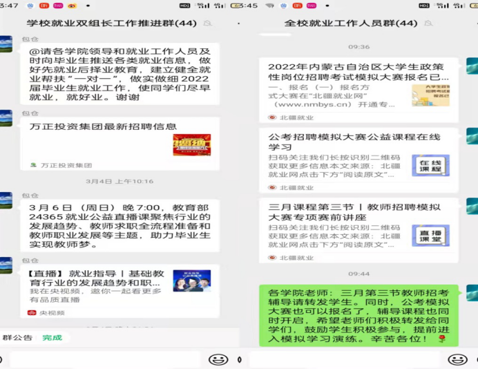 加強線上就業政策宣傳工作。依托學校就業信息網、就業微信官方平臺、學校就業工作群等不定期發布國家、自治區、市促進2022屆畢業生就業出臺的各種政策、措施、求職渠道,幫助學生及時了解就業政策、就業信息和就業渠道。鼓勵學生參軍入伍,參與西部計劃、選調生、特崗教師、三支一扶、大學生村官等大學生基層就業項目。同時,引導畢業生扎根邊疆,到基層一線建功立業,將青春理想融入家鄉發展,為鄉村振興貢獻力量。