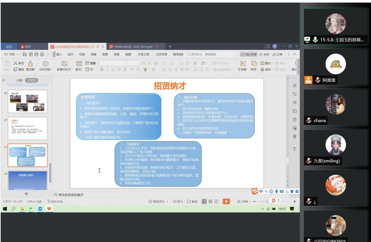 為切實滿足學院畢業生的求職需求,繼續做好畢業生就業服務工作,為2022屆畢業生順利就業提供良好就業擇業渠道,5月12日晚7時,外國語學院利用騰訊會議平臺舉辦了2022屆畢業生山東企業線上專場招聘會。本次會議由學院就業創業工作坊負責任人雷旭平主持,2022屆全體畢業生參會。
