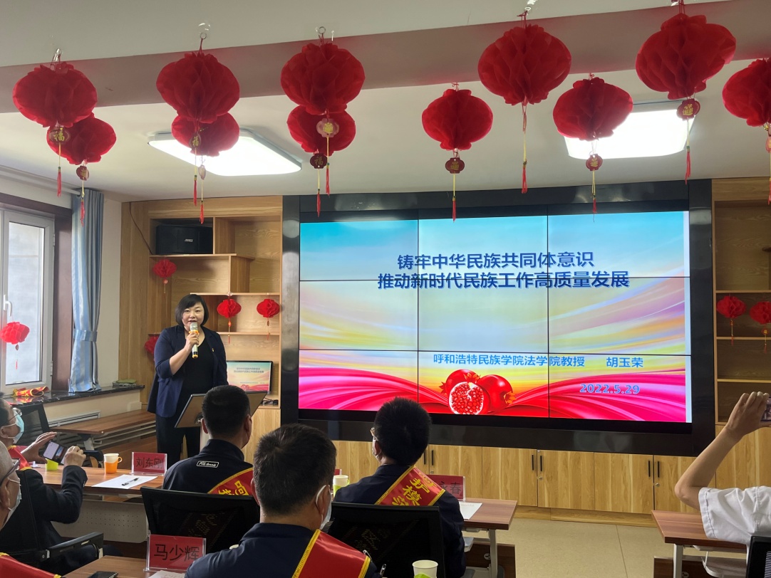活動中,法學院教工黨支部書記胡玉榮教授在回民區三順店社區作題為“鑄牢中華民族共同體意識,推動新時代民族工作高質量發展”民族團結輔導講座。講座圍繞深刻把握中華民族多元一體的基本國情,全面認識民族團結進步事業的偉大成就,推動新時代黨的民族工作高質量發展等三個方面,用平實的語言、生動的事例給與會人員上了一堂深刻的民族團結進步思想理論課。