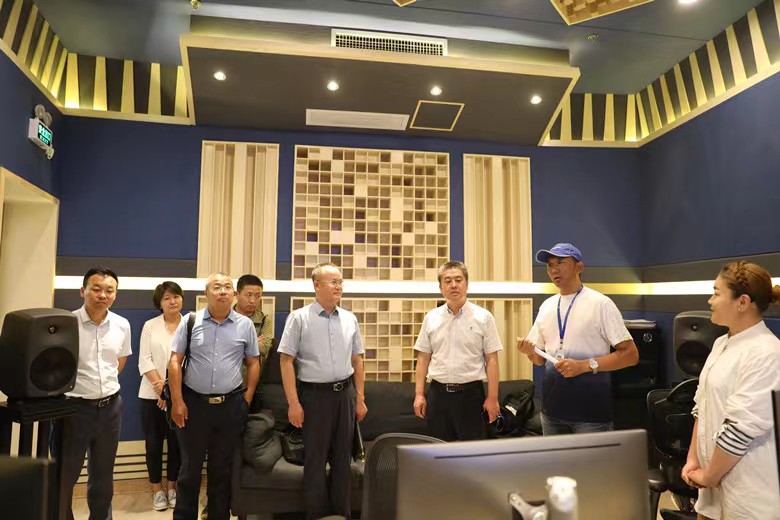 內蒙古民族語電影譯制中心主任齊雙寶、副主任布仁門德的陪同下,調研組一行參觀考察了內蒙古民族語電音譯制中心錄音棚、編輯室、放映室,現場觀摩譯制片制作過程。
