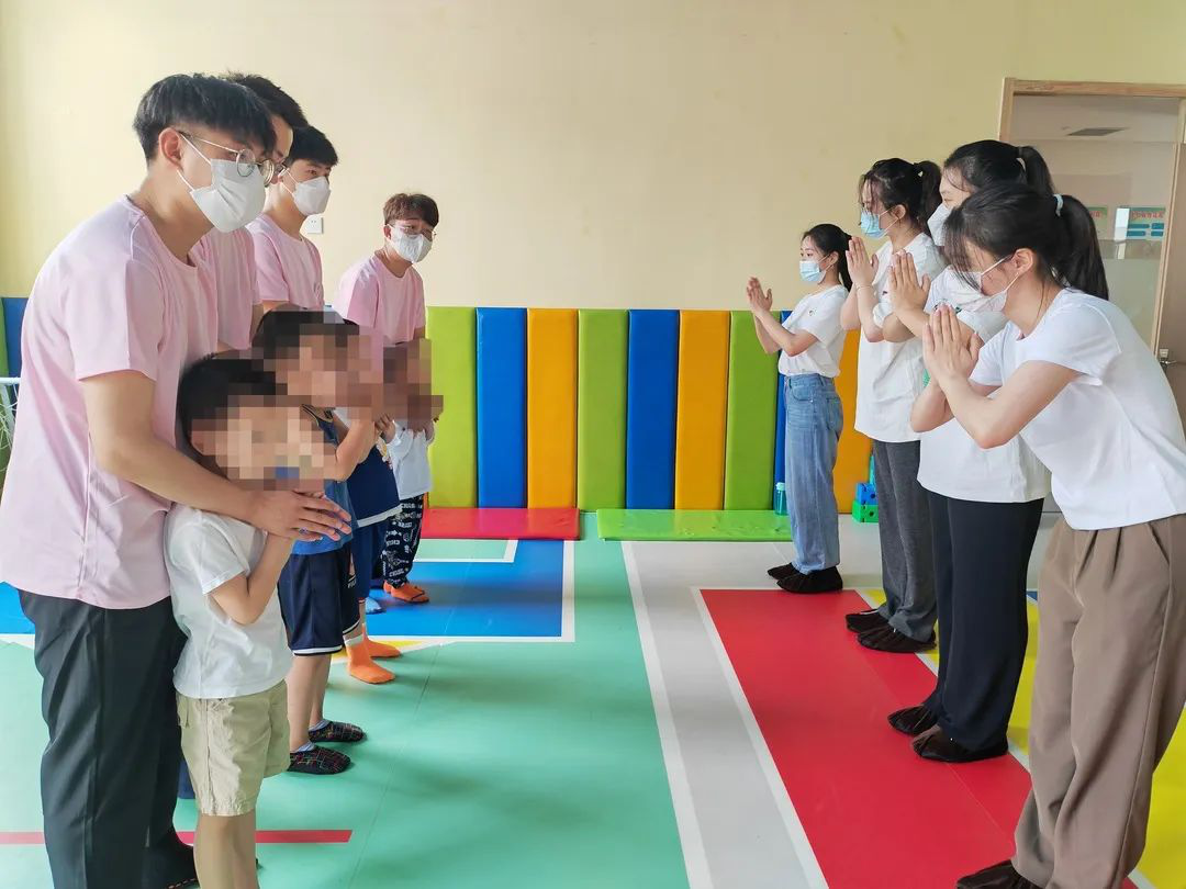 我校師生與天愛康復公益服務中心黨支部書記王喜貴、理事長崔朝霞進行了座談。通過座談和觀看宣傳片,志愿者們對服務中心各項工作和實踐服務要求有了更清晰的了解。隨后,崔朝霞理事長帶領大家參觀了該機構(gòu)的教學環(huán)境、設施及教學現(xiàn)場,并向大家詳細介紹了授課方式、師資力量、服務管理模式等情況。隨后,我校志愿者與小朋友們進行了現(xiàn)場互動。