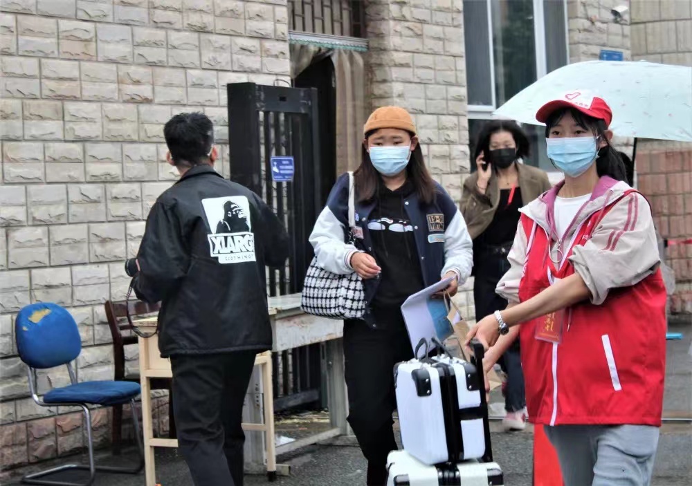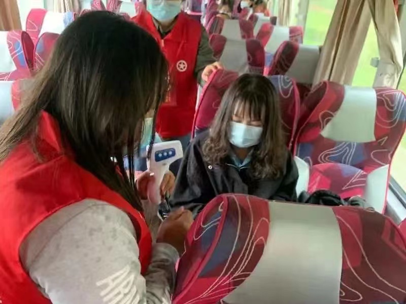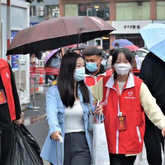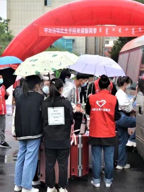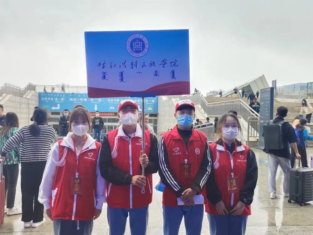 清晨,志愿者們帶好防護物資、引導牌前往呼和浩特火車站迎接新生入校。在志愿者的引導下,依次核驗學生身份信息、查看青城碼、行程碼,并進行隨行物品消殺、體溫監(jiān)測、登記等工作,有序上車就座。