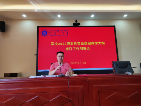 2022年9月12日上午,在辦公樓4樓會議室召開學校2022版本科專業課程教學大綱修訂工作部署會議。二級學院教學院長和專業負責人出席會議,會議由教務處處長額爾敦布和主持。