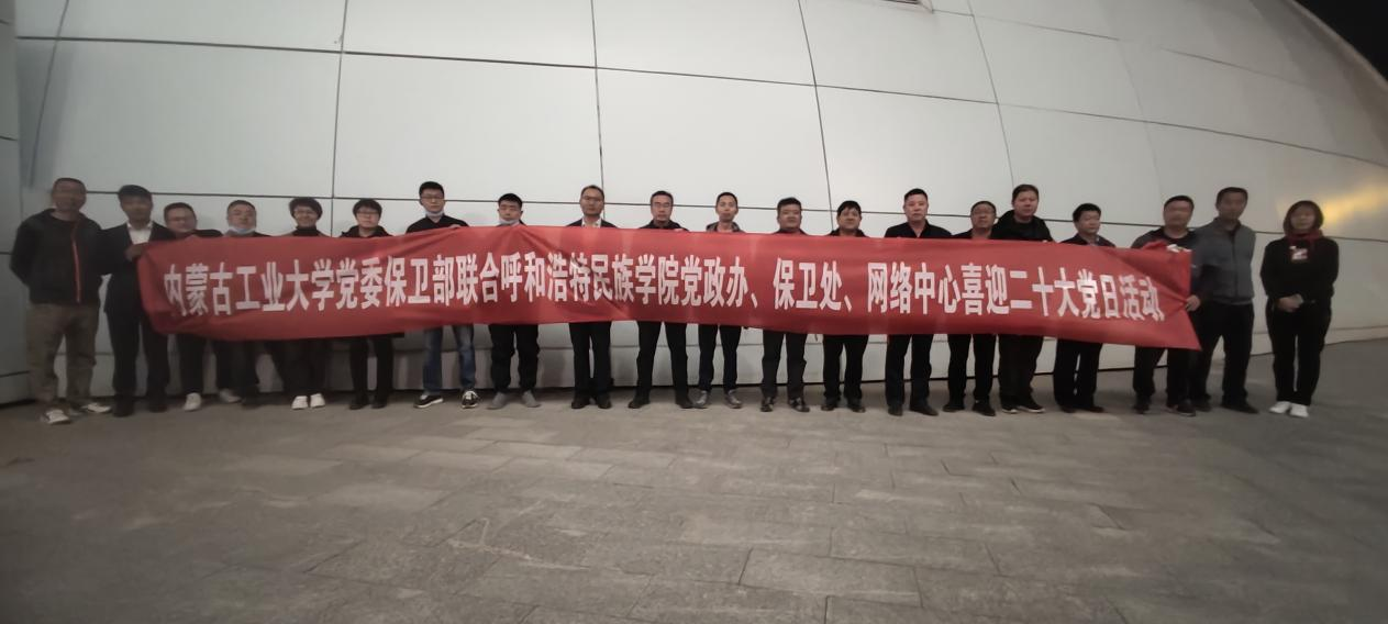 當晚,我校黨政辦、保衛處、網絡中心同內工大保衛處人員在內蒙古少數民族群眾文化體育運動中心共同觀看了大型馬舞劇《千古馬頌》,堅定了守望相助理念,發揚了團結進步的民族精神。
