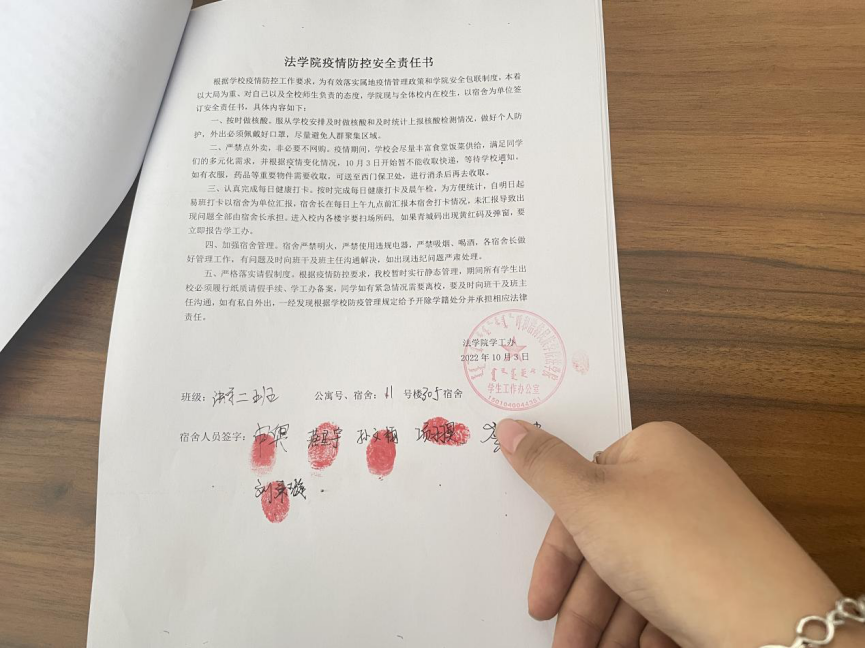 10月1日以來,疫情蔓延,形勢嚴峻,為應(yīng)對復(fù)雜多變的疫情形勢,確保校園師生安全,法學(xué)院黨總支書記烏蘭其其格牽頭帶領(lǐng)包玉柱、姜鵬、王孟合共四名教師于9月30日至今持續(xù)開展下沉宿舍,實現(xiàn)了包含法學(xué)院全體在校生的八棟公寓、91個宿舍全覆蓋的安全大排查,學(xué)生干部、黨員共計20余人參與排查工作,并與全院在校學(xué)生簽訂《法學(xué)院疫情防控安全責(zé)任書》。
