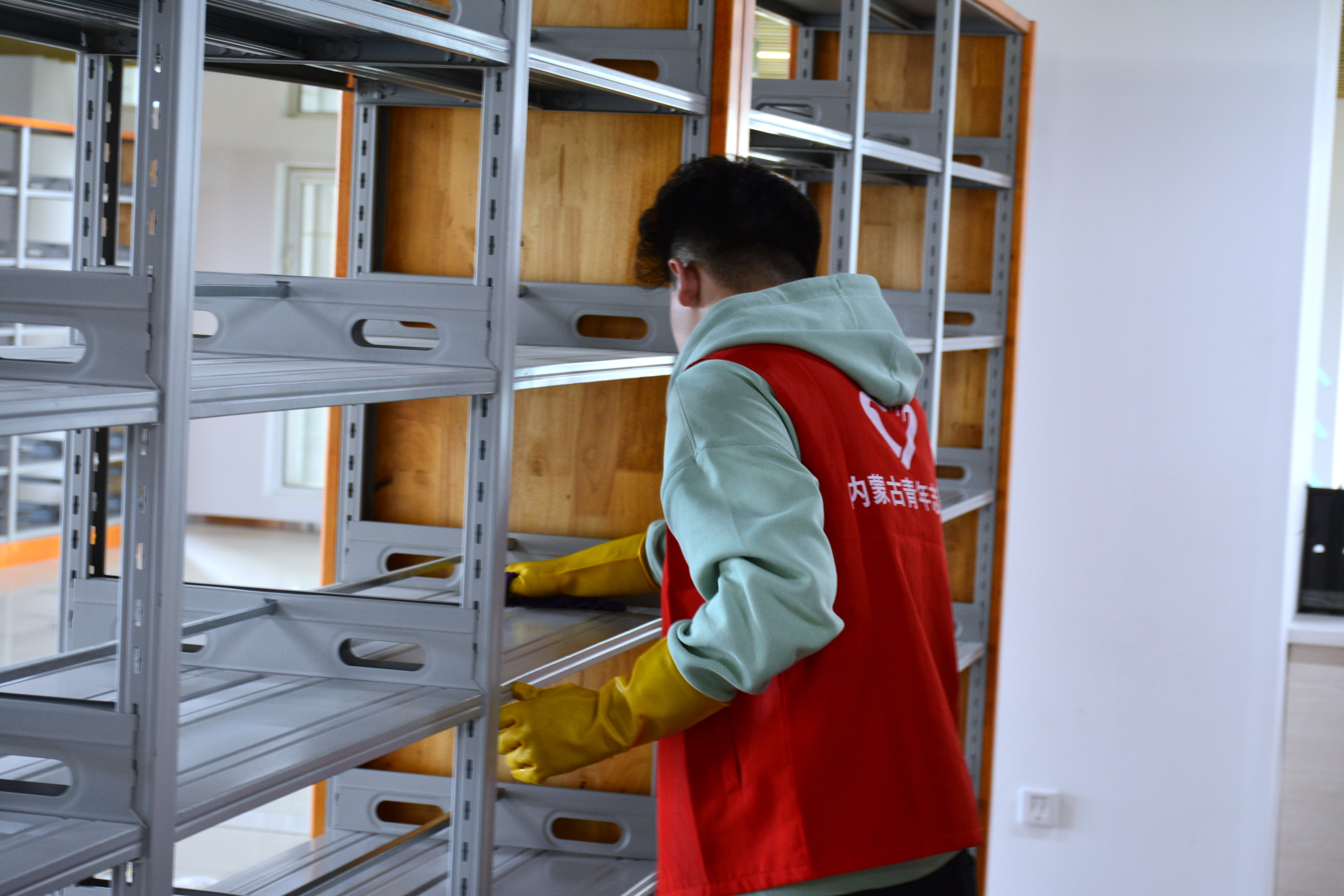 在校內團委組織志愿者在圖書館開展為期10天的學雷鋒志愿服務活動。共有160余名志愿者利用課余時間分批次到圖書館協助老師做好圖書拆包排序、分類整理、上架調整、館內衛生掃除等各項工作。