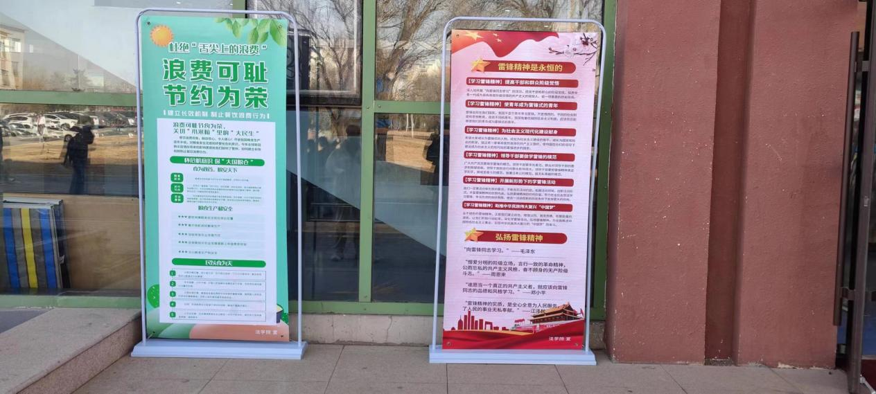 活動中,志愿者們在南院食堂樹立展板,吸引同學們駐足閱讀雷鋒先進事跡和勤儉節約的展板內容,引導同學們樹立“學習雷鋒精神”和“勤儉節約”意識。同學們還利用課余時間,對教師辦公區和教室進行了清掃工作,積極營造了干凈整潔的工作和學習環境。
