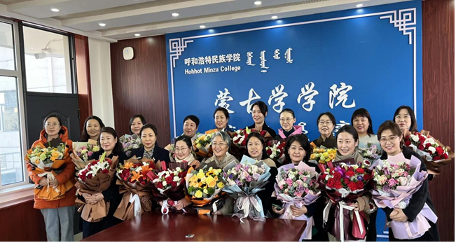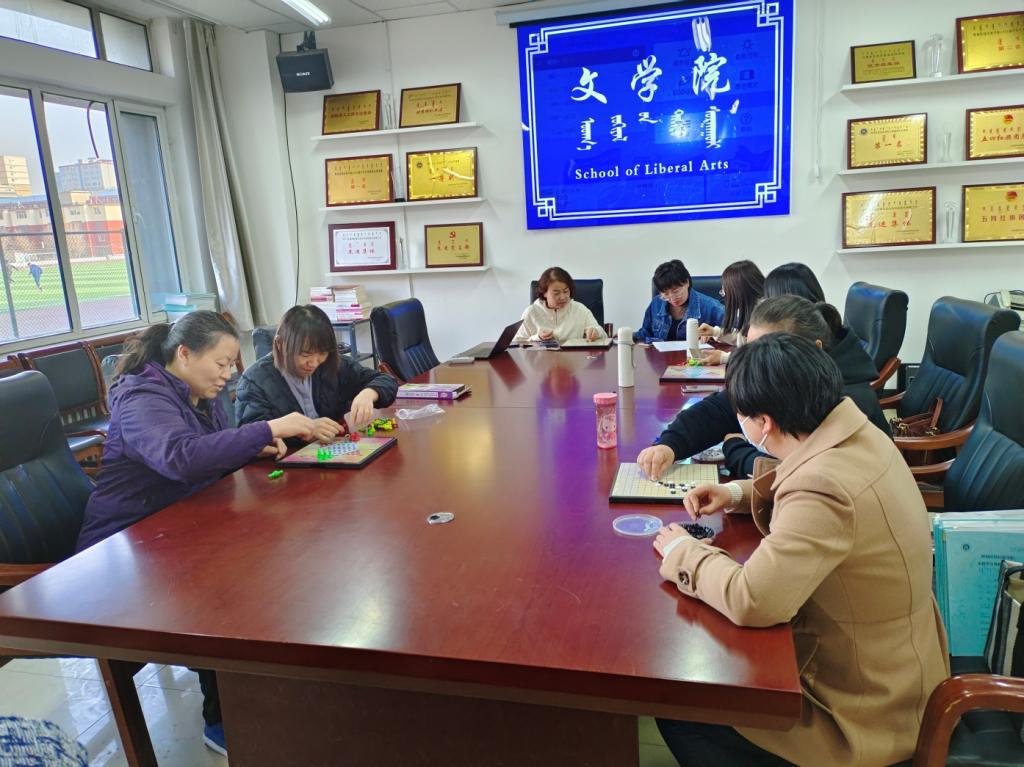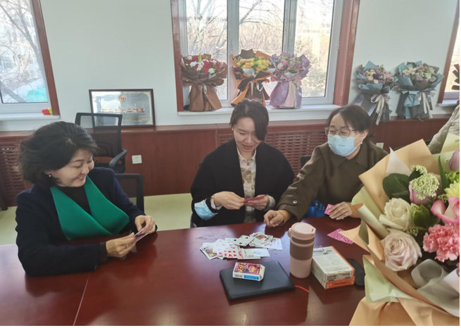 蒙古學學院分工會舉辦了贈送鮮花儀式和撲克比賽活動