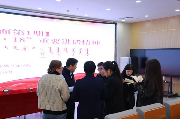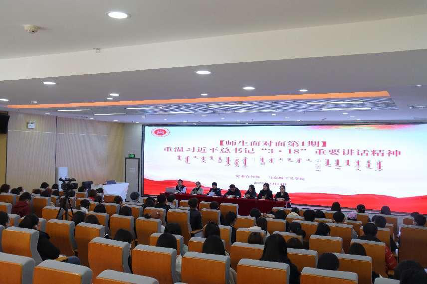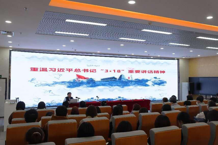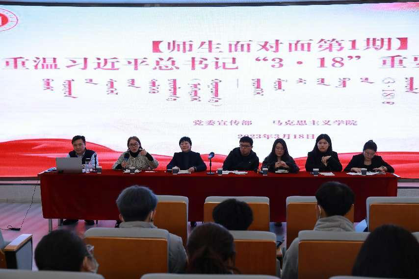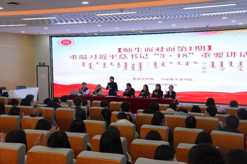 為紀念習近平總書記在全國學校思想政治理論課教師座談會上的重要講話發(fā)表四周年,著力打造高素質思政課教師隊伍,進一步增強思想政治理論課的思想性、理論性和親和力、針對性,3月18日上午,學校舉辦了第一期師生面對面思想政治教育系列活動——溫習近平總書記“3·18”重要講話精神。校黨委宣傳部相關負責人、馬克思主義學院師生近200人參加活動。活動由馬克思主義學院副院長吳美榮主持,師生互動環(huán)節(jié)由“毛概”教研室主任張秀芬主持。