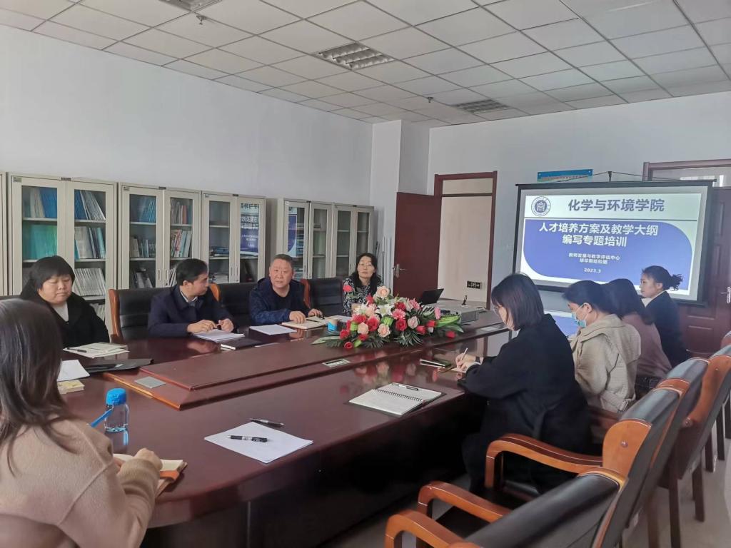 為進(jìn)一步推進(jìn)2022版人才培養(yǎng)方案修訂及教學(xué)大綱編寫工作,近日,化學(xué)環(huán)境學(xué)院邀請(qǐng)學(xué)校教師發(fā)展與教學(xué)評(píng)估中心胡畢斯哈拉圖主任就人才培養(yǎng)方案修訂和教學(xué)大綱的編寫做了專題輔導(dǎo)。教師發(fā)展與教學(xué)評(píng)估中心敖金山及化學(xué)與環(huán)境學(xué)院各專業(yè)負(fù)責(zé)人、教研室主任及全體任課教師參會(huì),培訓(xùn)會(huì)議由學(xué)院院長(zhǎng)李福全主持。