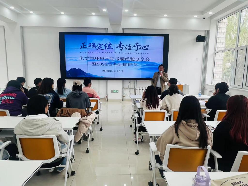 為進一步提升2024屆畢業(yè)生的考研積極性,幫助考研學子調整心態(tài),做好考研規(guī)劃和復習策略,2023年4月26日下午,化學與環(huán)境學院在創(chuàng)業(yè)樓1樓會議室召開考研經驗分享會暨2024屆考研推進會。學院領導班子、教研室主任、2014屆畢業(yè)班班主任,2024屆考研學生參加會議。會議由輔導員陳斌老師主持。