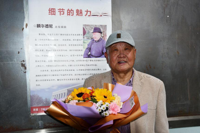 額爾德尼老師首先從自身成長經歷談起,講述了兒時艱苦的學習環境以及早年身為實習記者的工作經歷,向聽者回顧起一位老電視藝術工作者的心路歷程,清晰勾勒出讀書改變命運的人生步履。業務方面,尤其提到要重視生活當中“細節”的重要性,作為新聞工作者,要有善于發現細節的眼睛,積累學識和掌握技能的同時,尋求細微的契合點,多元思路融會貫通,方能創作出好的作品。