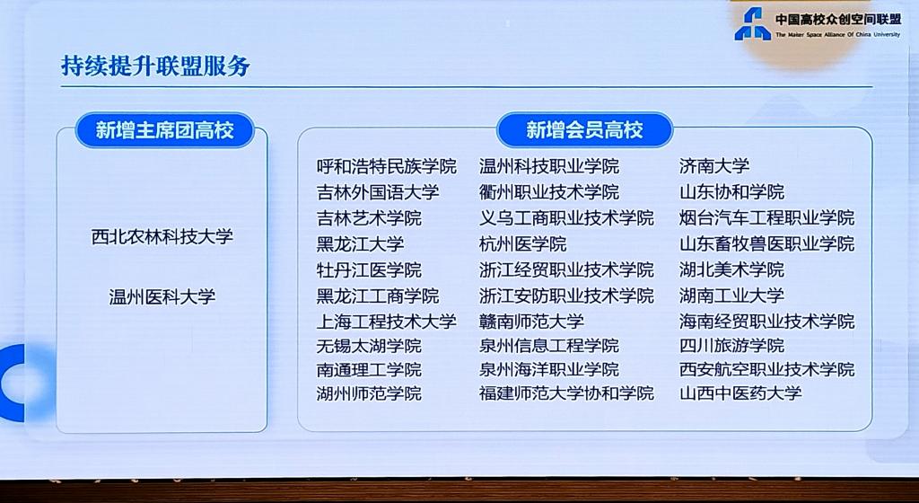 中國高校眾創空間聯盟由浙江大學等多所高校聯合發起,于2019年12月1日在浙江大學正式成立。聯盟現有浙江大學、清華大學、北京大學、復旦大學、南京大學、武漢大學等200多所會員單位。聯盟為各高校、知名企業、社會組織搭建創新創業教育、創業資源共建共享、有效協同的溝通平臺,已成為國內創新創業教育改革、人才培養模式改革方面的最高規格平臺。加入中國高校眾創空間聯盟,為我校與國內知名高校合作交流提供重要溝通平臺,對我校創新創業教育改革、人才培養模式改進等方面具有重要意義。