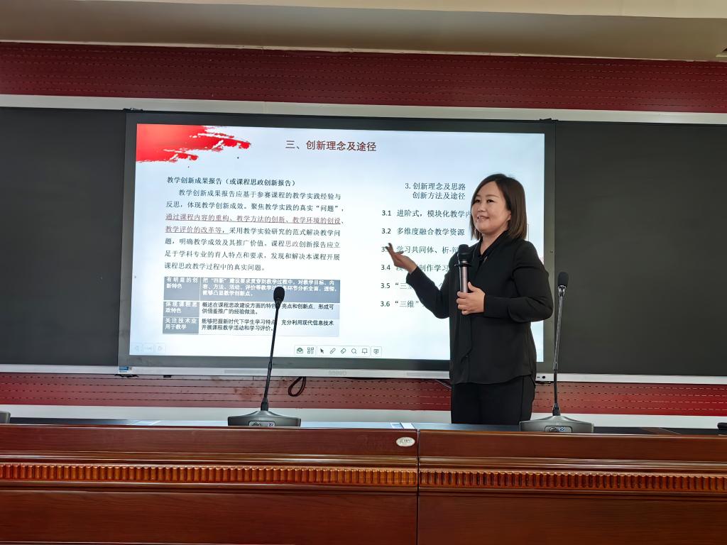 本次教學沙龍緊緊圍繞課程教學創新這一主線,首先由2023年度自治區高校教學創新大賽獲獎教師,新聞傳媒學院烏蘭副教授和外國語學院海拉博士先后結合參加區級比賽經歷,從課程痛點的分析、課程內容的重構、教學方法的創新、教學環境的創設、教學評價的改革、教學資源的建設和團隊攻關的策略等方面進行了詳細匯報。