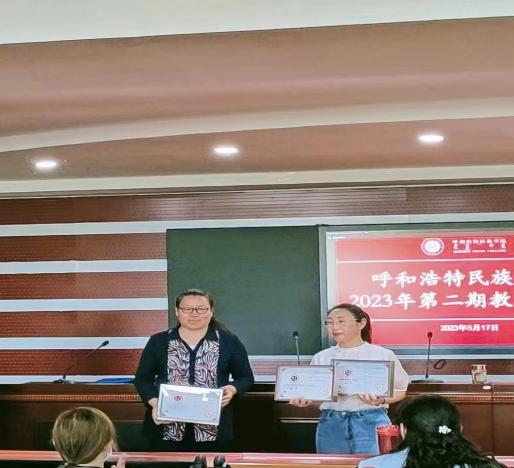 在教學沙龍開始前,額爾敦布和處長為獲得2022年度高等教育自治區級教學成果獎的團隊和第三屆內蒙古自治區高校教師教學創新大賽獲獎的教師(團隊)頒發了自治區級相關獎狀和榮譽證書。