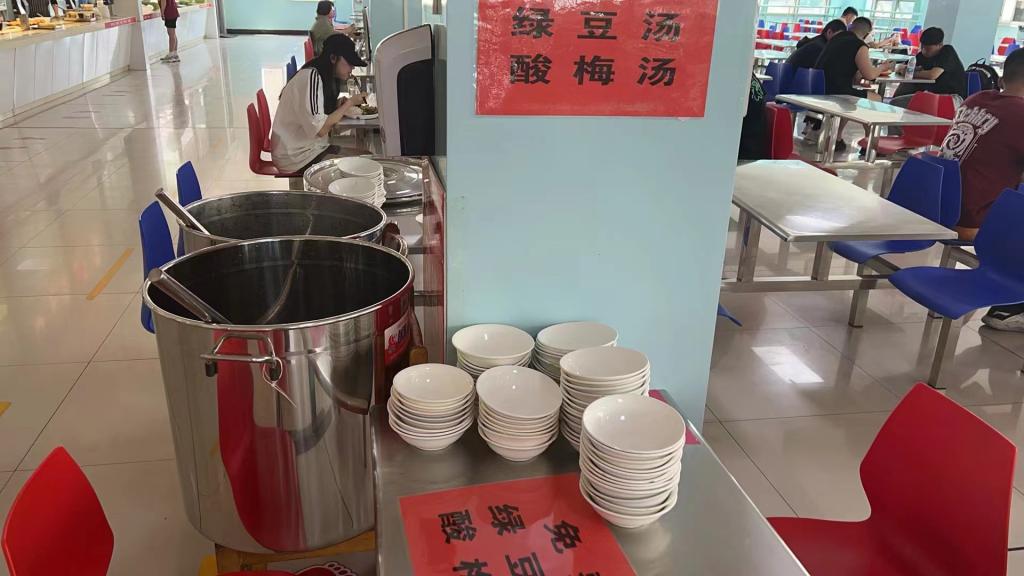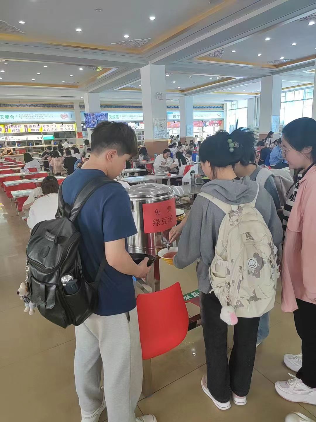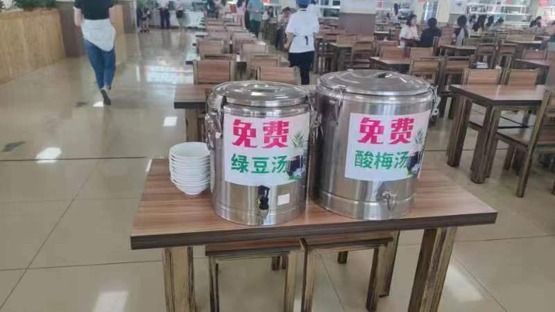 在深入開展主題教育之際,學校后勤管理處緊密圍繞服務師生這一根本任務,真抓實干,努力把學習教育成果轉化到提升服務、推動發展工作中來。 天氣逐漸炎熱,伴有連續的高溫,為了做好防暑工作,更好地服務學校廣大師生。學校后勤管理處餐飲服務中心全體員工為表達對師生的關心,幫助師生抵抗高溫,6月6日開始,學校南、北食堂每一個樓層為師生們免費提供綠豆湯和酸梅湯飲用。在這炎炎夏日帶給師生們一絲“清涼”和滿滿的愛意。