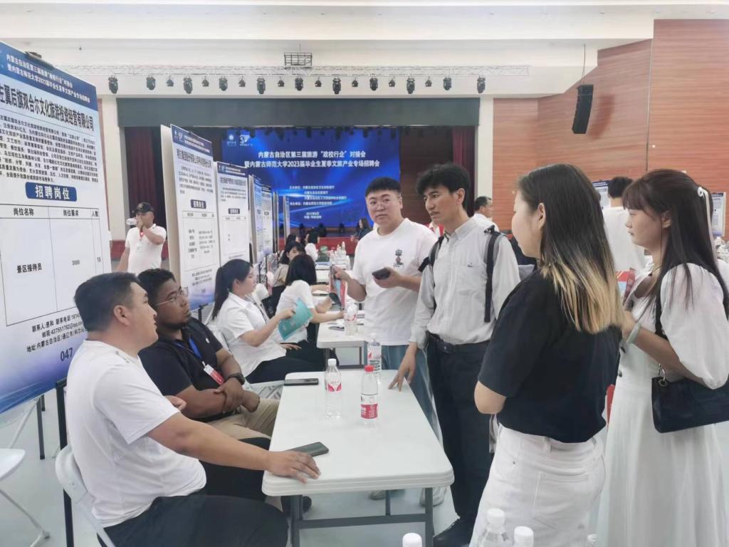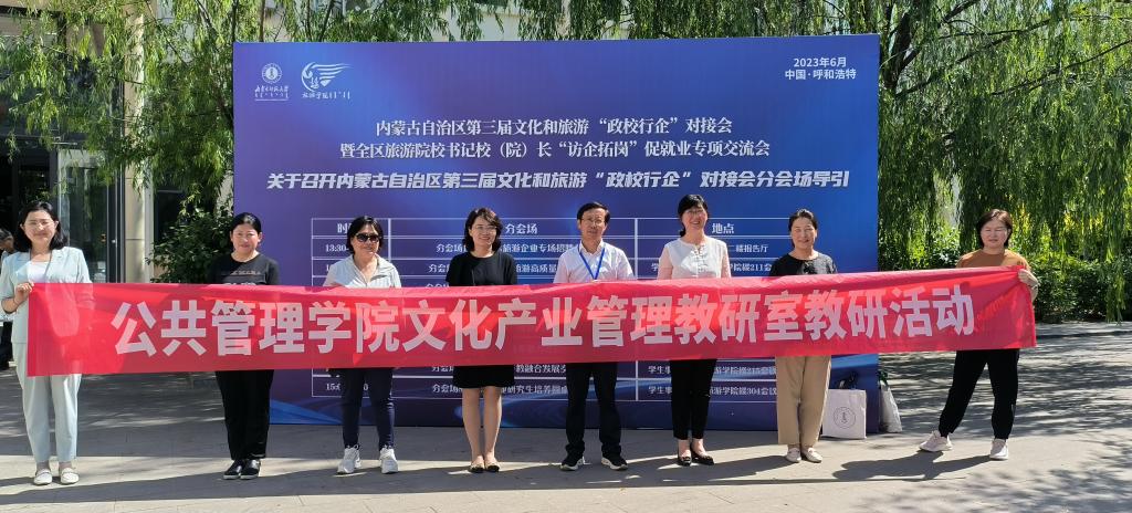 6月15日,由內蒙古自治區文旅廳、教育廳和人社廳共同主辦的自治區第三屆文化和旅游“政校行企”對接會暨全區旅游院校書記校(院)長訪企拓崗促就業專項交流會在內蒙古師范大學大學舉行,呼和浩特民族學院公共管理學院院長哈斯同力嘎出席,副院長額爾敦格日樂、文化產業管理教研室主任馬冬梅和部分教師參加了本次會議,文化產業管理和旅游管理專未就業的部分學生參加了招聘會。