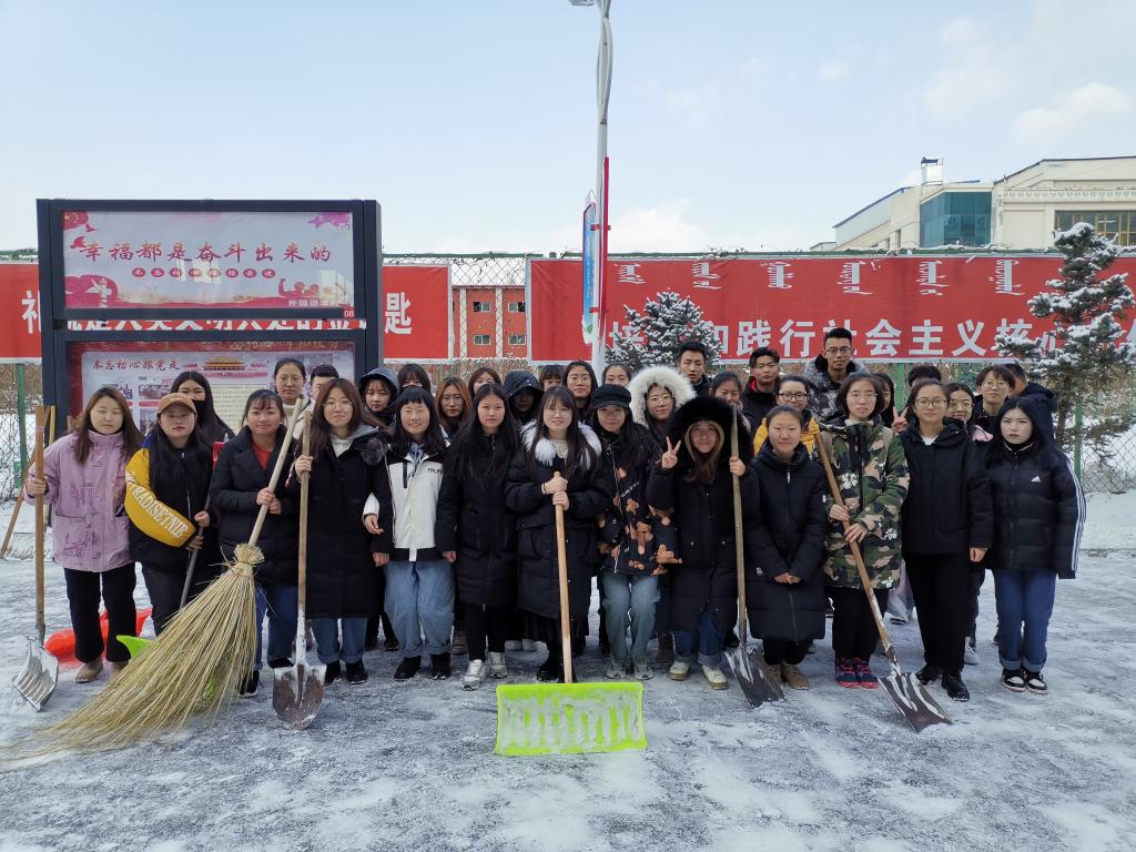 近日,呼市再次迎來降雪,校園內(nèi)白雪皚皚、銀裝素裹,為校園內(nèi)帶來一絲詩意,因此校園內(nèi)處處被雪覆蓋,有的地方結(jié)成薄冰,給老師、同學們及來往的行人們的出行帶來了不便。為引導青年學子尋初心、擔使命,培養(yǎng)學生服務(wù)他人意識,12月16日中午,外國語學院學生黨員、全體學生會成員和青年志愿者協(xié)會共計65人在雷旭平老師的帶領(lǐng)下于都林樓北門開展了“不忘初心、牢記使命”暖心冬日除雪活動。