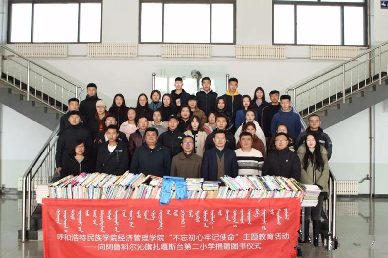 經濟管理學院“不忘初心、牢記使命”主題教育暨向阿魯科爾沁旗扎嘎斯臺第二小學捐贈圖書開幕式于11月20日在都林樓二樓正式啟動,學校第三指導組海泉處長、經濟管理學院黨總支書記賽音圖、副書記烏日根巴雅爾以及阿魯科爾沁旗教育局副局長賀希格德力格爾,扎嘎斯臺第二小學校長恩和巴雅爾及該校全體師生參加了此次啟動儀式。
