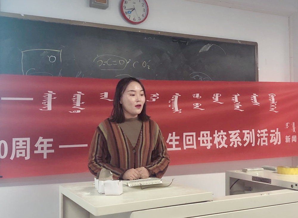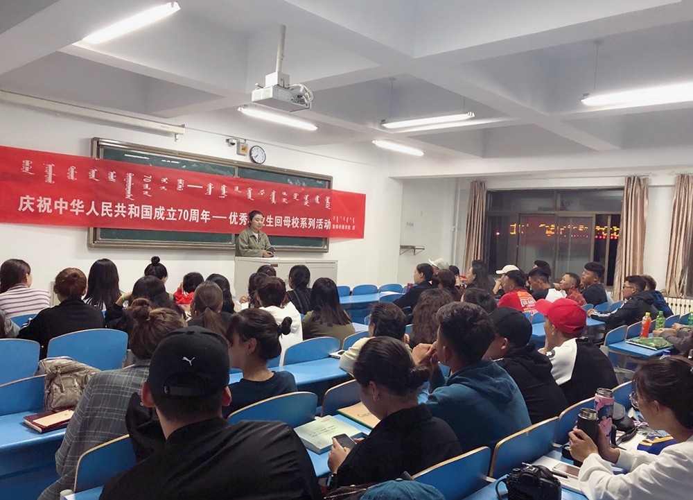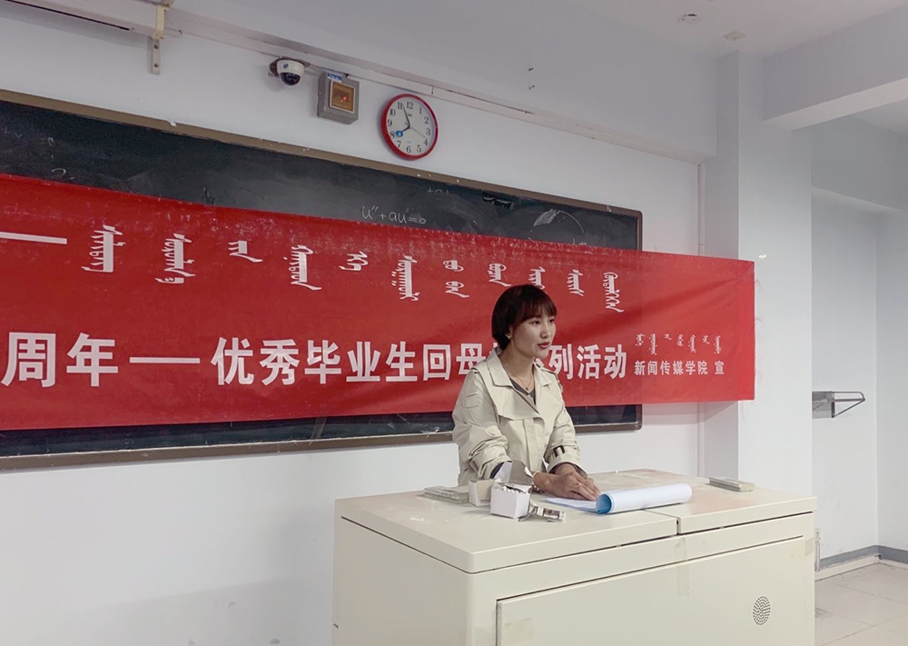 截至目前,優秀畢業生回母校系列講座活動已邀請了考研成功的2019屆新聞學專業畢業生呼日很;考研成功的2019屆新聞學專業畢業生牧其爾;考研成功的2019屆新聞學專業畢業生孫德爾;獲得第一屆全國八省區配音大賽優秀獎的目前在內蒙古電視臺工作的2019屆播音與主持藝術專業畢業生冬金嘎日布等幾位同學回母校進行了講座,他們分別就自己熟悉和擅長的領域,分享學習、參加考試、就業等心得和經驗,講座均取得了滿意的效果。