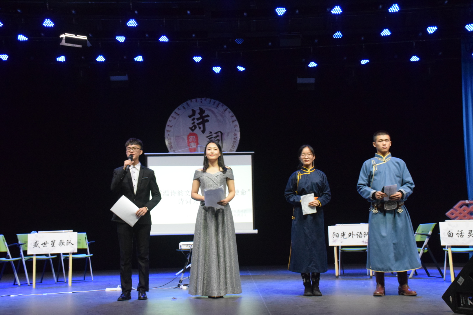 11月4日晚7時(shí),由團(tuán)委主辦、文學(xué)院承辦的“重溫詩韻文化,感悟初心使命”主題詩詞大會(huì)決賽在學(xué)校演播廳舉行。學(xué)校團(tuán)委副書記白銀亮、文學(xué)院黨總支副書記包冬梅、副院長(zhǎng)哈琴、李薩茹拉老師、烏云高娃老師、王佳老師擔(dān)任評(píng)委,近200名學(xué)生到場(chǎng)觀看比賽。