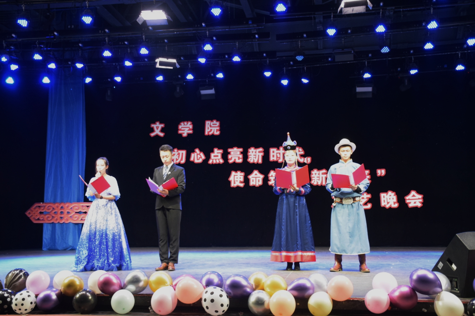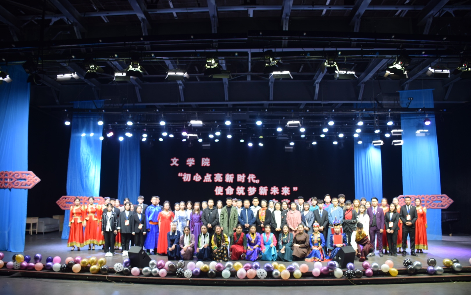 為進一步推進“不忘初心、牢記使命”主題教育走深走實,啟發同學們守初心、擔使命的理想信念,文學院“初心點亮新時代,使命鑄就新未來”主題教育文藝晚會于10月31日在我校演播廳舉行。文學院黨總支書記李宏亮、辦公室主任多榮娜、團總支副書記張子涵、輔導員老師以及近200名學生觀看了本次演出。