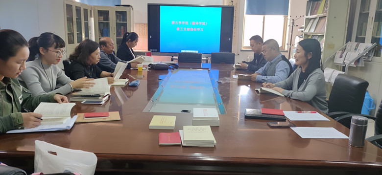 10月31日下午,依照學(xué)校黨委“不忘初心、牢記使命”主題教育部署要求,蒙古學(xué)學(xué)院教工黨支部組織支部黨員在都林樓409會議室開展集中學(xué)習(xí)。