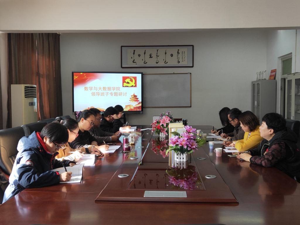 10月24日上午,數(shù)學與大數(shù)據(jù)學院在沃德樓205會議室(主題教育讀書室)召開班子成員對照黨章黨規(guī)找差距專題會議,學校主題教育第三指導組海泉組長一行到會指導。學院領(lǐng)導班子成員在前期逐條認真學習的基礎(chǔ)上,對照黨章、《關(guān)于新形勢下黨內(nèi)政治生活的若干準則》《中國共產(chǎn)黨紀律處分條例》查擺問題,并結(jié)合個人、職責、工作實際談學習認識、談短板不足、談問題原因、談?wù)呐e措。