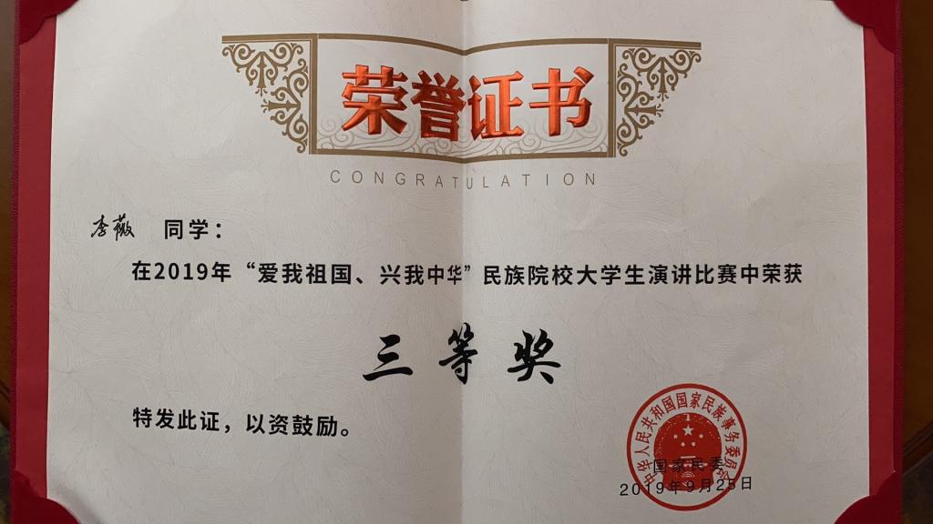 選手們經過激烈角逐,最終中南民族大學、西北民族大學、云南民族大學、呼和浩特民族學院、貴州民族大學五所院校獲“優秀組織獎”。我校李薇同學榮獲大賽的三等獎。