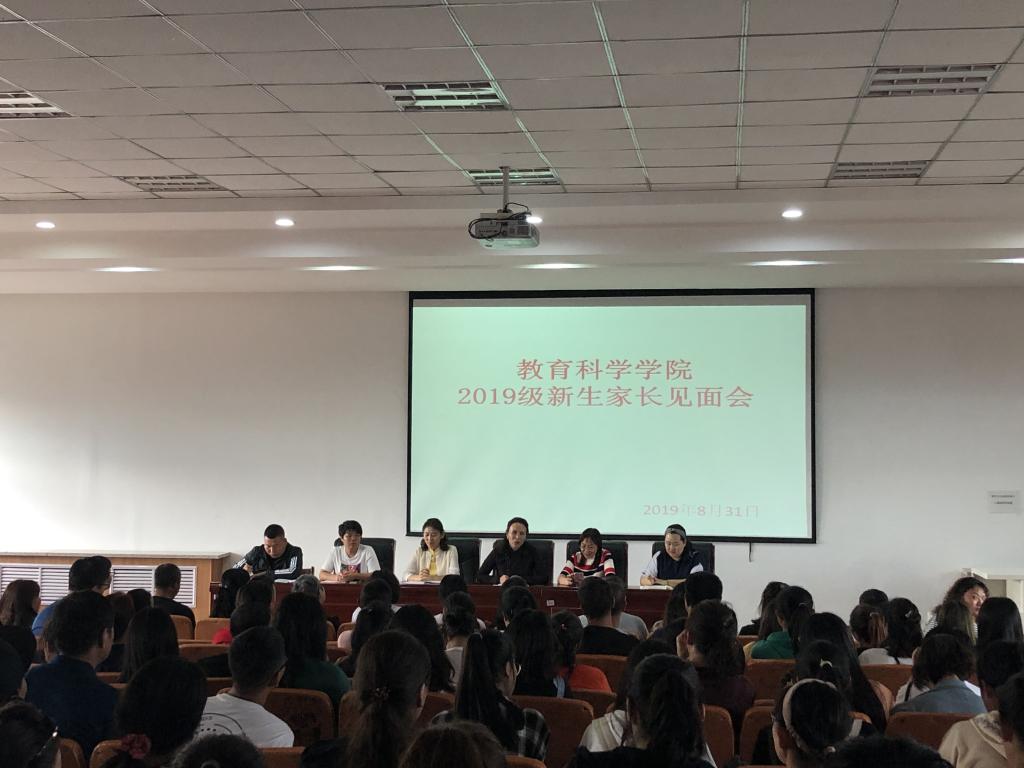 8月31日下午4時,教育科學學院在美術樓階梯教室召開了2019級新生家長見面會,本次會議由團總支書記安梅琴主持,教育科學學院黨總支副書記娜仁其木格、其其格、新生班主任以及120余名新生家長參加。