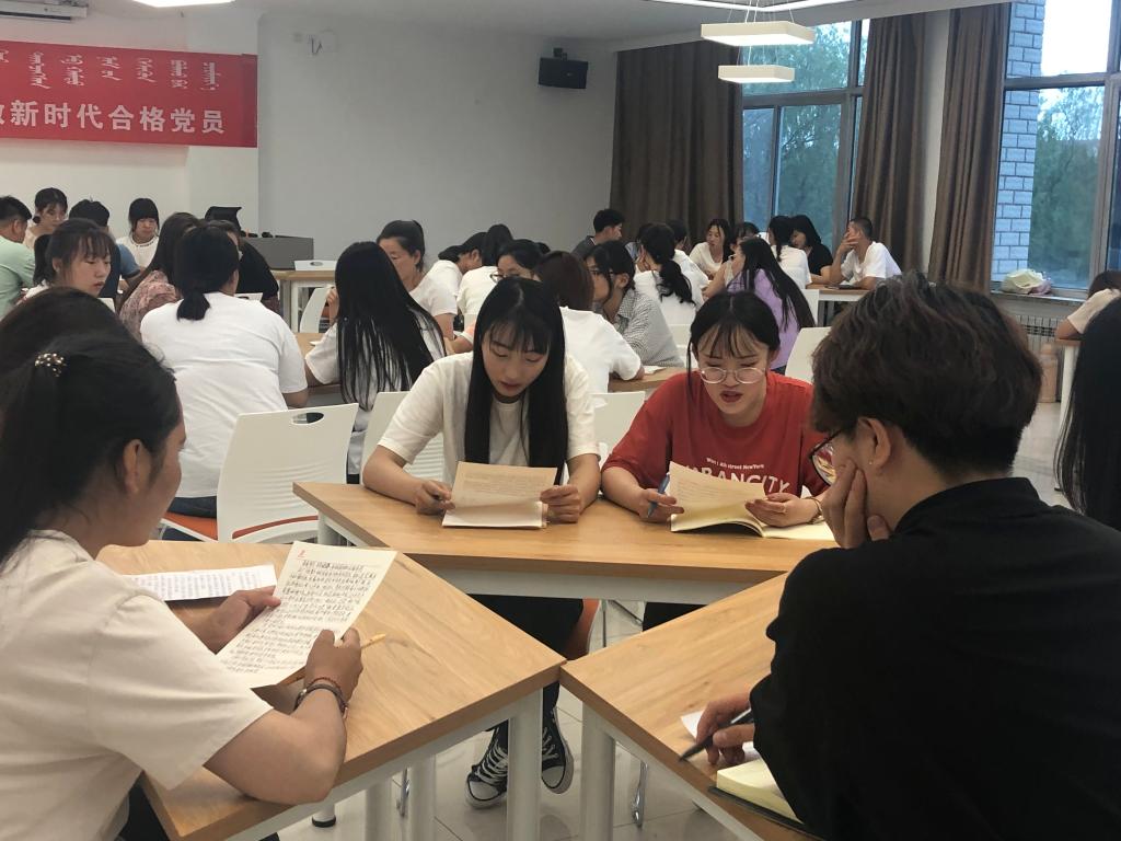 會上,首先由安梅琴老師講話,她要求現場每個人積極參與交流研討,推動交流研討往深里走、往心里走、往實里走。隨后,安梅琴老師把全體黨員、預備黨員、發展對象和積極分子分成了七個小組,先開展組內交流探討,再由每個小組各派代表上臺分享學習思考和心得體會。最后,許曉芳老師作了總結,她既肯定了本次交流研討的必要性,又提出了作為新時代中國特色社會主義的建設者和接班人,需要每個黨員讀原著、學原文、悟原理,在學懂弄通做實上下功夫,要不斷增強“四個意識”、堅定“四個自信”、做到“兩個維護”,堅定不移聽黨話、跟黨走。