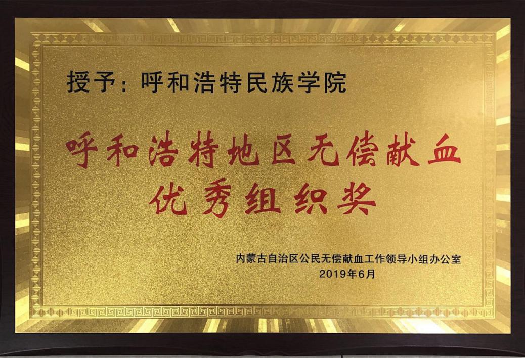 6月14日上午,由自治區(qū)公民無償獻(xiàn)血工作領(lǐng)導(dǎo)小組辦公室,自治區(qū)衛(wèi)生健康委員會(huì),自治區(qū)紅十字會(huì),中國人民解放軍內(nèi)蒙古軍區(qū)保障局,自治區(qū)直屬機(jī)關(guān)志愿者服務(wù)基地,呼和浩特市衛(wèi)生健康委員會(huì)主辦,自治區(qū)血液中心,自治區(qū)輸血協(xié)會(huì),內(nèi)蒙古廣播電視臺(tái)經(jīng)濟(jì)生活頻道《都市全接觸》承辦,內(nèi)蒙古維多利商業(yè)(集團(tuán))有限公司協(xié)辦的“人人享有安全血液”世界獻(xiàn)血者日慶祝活動(dòng)上,我校榮獲“呼和浩特地區(qū)無償獻(xiàn)血優(yōu)秀組織獎(jiǎng)”這一殊榮。