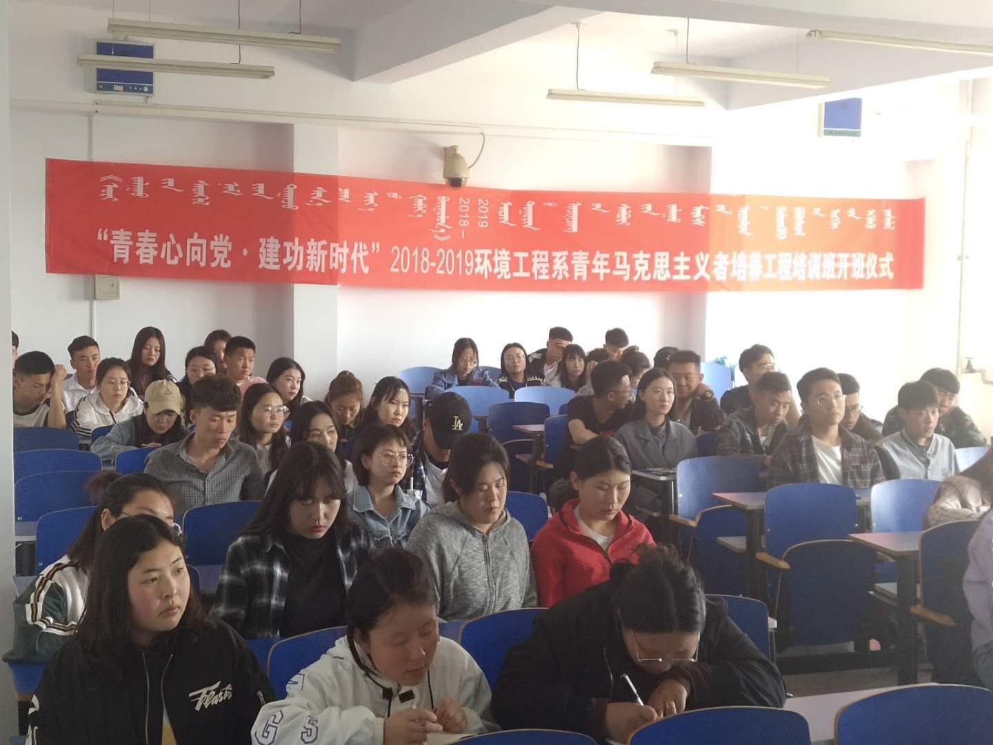 5月9日中午,在都林樓401教室,化學(xué)與環(huán)境學(xué)院舉辦了“青春心向黨 建功新時代”青年馬克思主義者培養(yǎng)工程培訓(xùn)班開班儀式,全院各團支部書記、組織委員、宣傳委員、班長、學(xué)生會干部等共74人參加,儀式由團總支烏依勒斯老師主持。