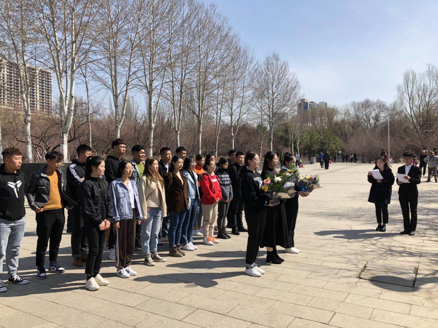 青山默默,松濤陣陣。4月4日上午,漢語言文學系組織學生到革命烈士碑前開展祭掃活動,緬懷先烈的光輝事跡。本次活動由輔導員華國慶、雷娜慶、劉曉帶隊,40余名學生參加本次緬懷先烈活動。