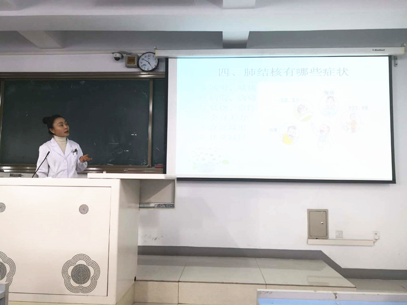 本次活動由醫務所劉晉雯所長主講,她結合當前我校學生肺結核感染和防治情況,從肺結核的傳播、癥狀、防治及應對感染患者措施到校醫與疾控中心的聯動機制等做了詳細講解說明,廣泛宣傳和普及了肺結核防治知識。