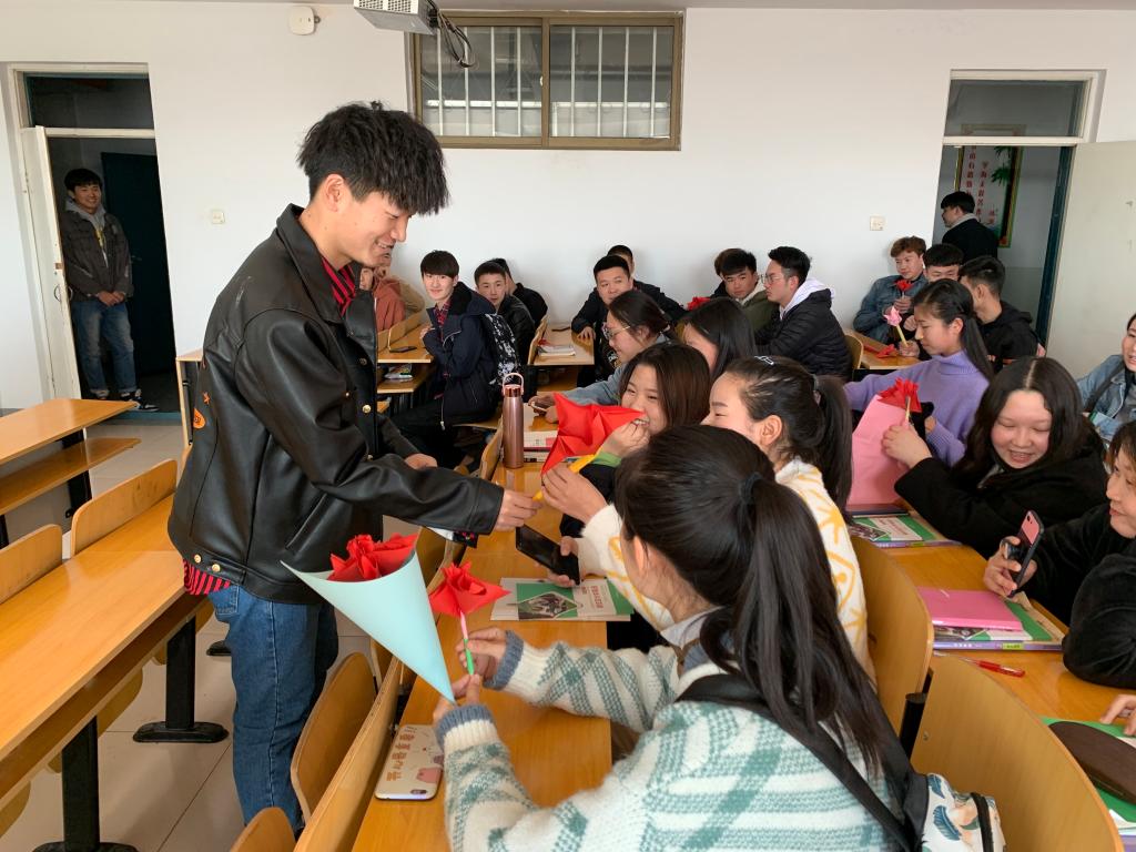 本次活動,主要由外語系男生選取喜歡的卡紙親手折紙花、紙心、千紙鶴等,為女生們送上自己的心意和祝福?;顒忧跋?,為保證紙花折疊效果,男生們多次練習,直到制作出滿意的作品?;顒舆^程中,男生們拿著折好的“鮮花”,逐一送給迎面走來的女生,送出真誠的祝福,并邀請路過的同學們在印有“活期現金余額寶,不如外語女生好”的宣傳條幅上簽下姓名和對女生們的美好祝福?;顒蝇F場精彩不斷,熱鬧紛呈。