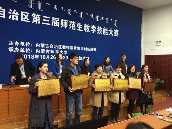 內蒙古自治區第三屆師范生教學技能大賽是由內蒙古自治區教師教育協同創新聯盟主辦,內蒙古師范大學承辦,旨在推動我區教師教育創新發展,深化大學生實踐教學改革,加強各高校教師教育經驗交流,切實提高全區高校師范生的創新精神和教育教學實踐能力。比賽分文科理科兩個組別,涵蓋中小學各學科教學,包括筆試和面試兩個環節,筆試采用教師資格考試真題,面試的內容分為教學設計、課件制作、即興演講、模擬授課和回答問題。我校選手憑借扎實的基本功、完整的試講和詳細的回答取得了良好的成績,最終,我校獲得優秀組織獎,哈琴老師獲得優秀指導教師獎,楊婷宇同學獲得小學教育語文組三等獎,高琿同學獲得小學教育語文組優秀獎。
