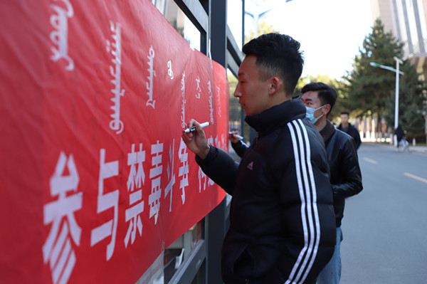 10月26日中午,傳媒系團(tuán)總支學(xué)生會(huì)以“參與禁毒斗爭 構(gòu)建和諧社會(huì)”為主題在都林樓前舉行了簽名活動(dòng),近300名師生參與。