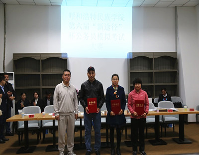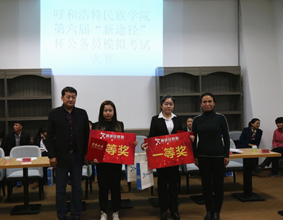 經激烈角逐,綜合筆試和面試成績,最終胡玉晴、范蘇文同學分別榮獲一等獎,并獲得由新途徑教育機構提供的價值4980元的課程卡;徐文靜等三名同學榮獲二等獎,獲得價值3600元課程卡;梁艷等四名同學榮獲三等獎,獲得價值1500元課程卡;何茹等六名同學榮獲優秀獎,獲得價值900元課程卡。 胡玉晴、范蘇文同學將代表我校參加駐呼高校公務員模擬大賽面試總決賽。