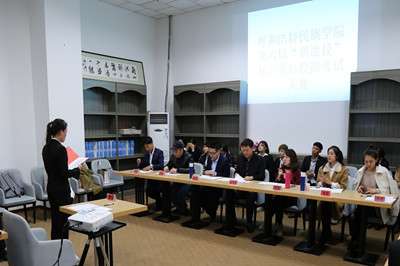 通過前期組織開展宣講會及模擬筆試大賽等環節,最終學校選拔出14名筆試成績優異的學生進入“新途徑”杯公務員模擬面試環節,面試于10月23日晚間在體育館五樓會議室舉行。學校就業指導中心主任朝格吉樂圖、副主任娜仁其木格、管理系、教育系就業創業工作負責人、新途徑教育機構負責人參加,由新途徑教育機構五位老師、就業指導中心海軍老師、管理系前達蒙老師擔任面試考官。
