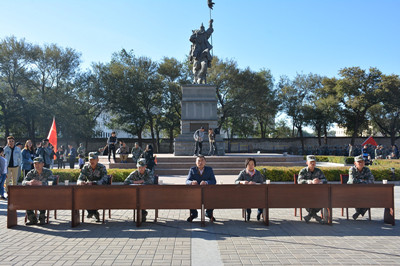 為充分展現我校新生軍訓風采和成果,學校于9月22日上午,在天驕廣場舉辦了新生軍訓歌詠比賽活動。評委由學生工作處2名老師和軍訓團5名教官共同擔任。 本次新生軍訓歌詠比賽共有14個代表隊參賽。各代表隊同學們用激情嘹亮的歌聲演唱了《團結就是力量》、《強軍戰歌》、《和平守衛者》等耳熟能詳的愛國、軍旅歌曲,抒發了對黨、對祖國、對學校的熱愛之情。經過激烈的比拼,最終由體育系、計算機系、外語系、漢語言文學系、蒙古語言文學系、數學系等6個代表隊獲得了比賽前6名。(學生工作處供稿)