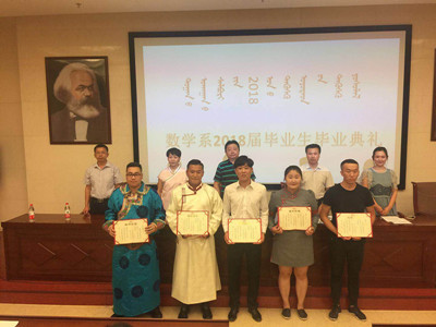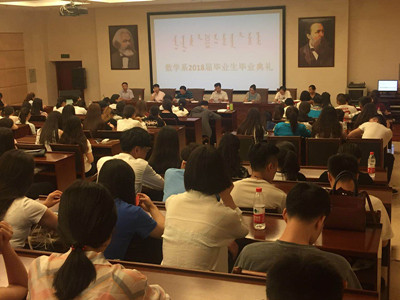 6月22日晚,數學系2018年畢業典禮在圖書館一樓報告廳隆重舉行。本次畢業典禮由數學系副主任額爾敦其其格主持,全體教師、全體畢業生和非畢業班學生代表參加。