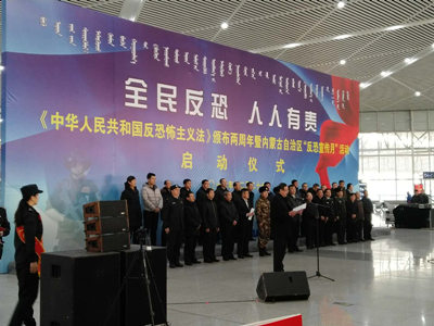 12月27日上午,《中華人民共和國(guó)反恐怖主義法》頒布兩周年暨自治區(qū)“反恐宣傳月”活動(dòng)在呼和浩特市火車(chē)東站舉辦,自治區(qū)政府副主席、公安廳廳長(zhǎng)馬明出席活動(dòng)并講話。自治區(qū)公安廳副廳長(zhǎng)成映澤主持會(huì)議。