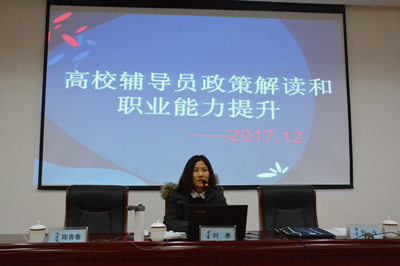 盧曉永科長主講了國家最新資助體系相關政策、自治區的資助種類以及各項資助工作實施過程中容易出現的問題及處理辦法。他提出,資助工作人員要把工作重點放在誠信、感恩、自強教育上,要讓學生誠實守信、純潔無污點;要讓所有家庭經濟困難學生感受到溫暖,做好受助學生的勵志教育,克服暫時困難,迎接新的挑戰。劉惠同志圍繞輔導員工作作了題目為《高校輔導員政策解讀與職業能力提升》專題講座,細致全面地介紹了輔導員應該怎樣自我提升和做好思想政治工作,并著重講解了怎樣提升學習及科研能力。李慧教授以《把握成長發展規律,促進大學生健康成長》為題目,全面解讀了大學生心理健康教育與咨詢工作的概述、目標與路徑、心理癥狀的甄別以及心理咨詢教師應該具備的心理素質等方面的專業知識。賀斐副處長(副書記)以《熱愛我的選擇》為主題,剖析了輔導員職業能力大賽的主題演講和談心談話環節中可能出現的問題以及解決的對策,并就如何把握重點、開展互動、化解難題提出了自己的建議和分享了親身參加比賽的寶貴經驗。